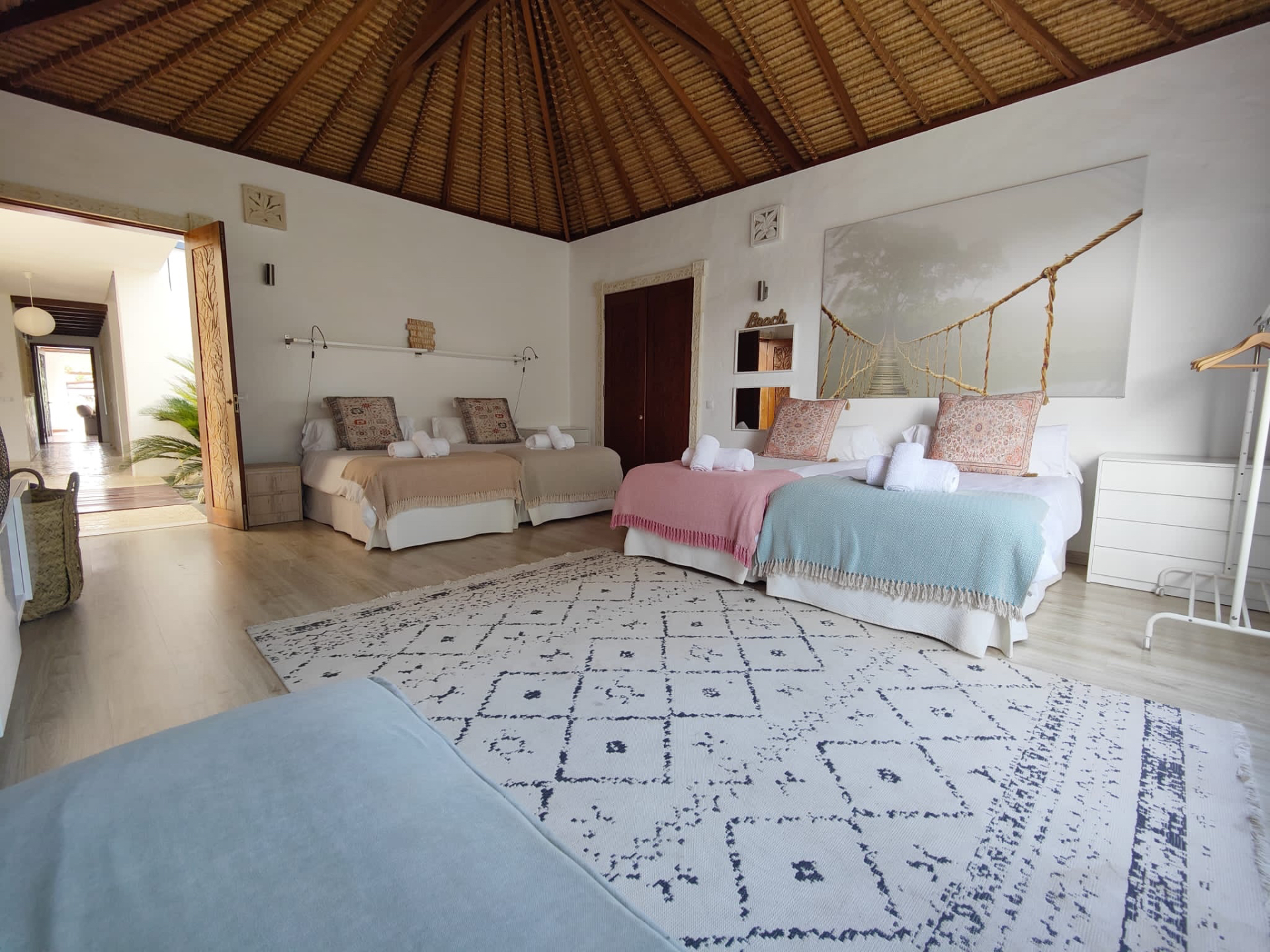 The retreat will take place at the stunning Bali House, a Balinese-style villa in Lajares village, in the north of the island. The large living room and eat-in kitchen will be at your disposal at all times, along with the outdoor shaded eating area and the heated pool.